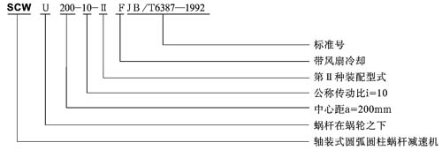 SCW系列軸裝式圓弧圓柱蝸桿減速機的公稱傳動比i及傳動比代號見下表。
