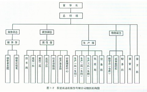 Ⅰ豐碩成果 坐落在中國(guó)蘇中平原的泰星減速機(jī)股份有限公司從1984年建廠(chǎng),經(jīng)過(guò)20多年的拼搏發(fā)展,取得了驕人的業(yè)績(jī),創(chuàng)造了許多令人難以置信的奇跡。 從當(dāng)初無(wú)資金、無(wú)設(shè)備、無(wú)產(chǎn)品、無(wú)市場(chǎng)的一窮二白、資不抵債的作坊式小廠(chǎng)發(fā)展成為現(xiàn)擁有固定資產(chǎn)3.8億元,員工2500多人,其中一程技術(shù)人員586人,占地68萬(wàn)平方米的中國(guó)最大的減速機(jī)制造企業(yè),成為了中國(guó)減速機(jī)的生產(chǎn)基地,泰星減速機(jī)股份有限公司。根據(jù)2003年中國(guó)機(jī)械500強(qiáng)的排序,名列全國(guó)減速機(jī)行業(yè)榜首。 公司生產(chǎn)減速機(jī)不僅產(chǎn)量最高,銷(xiāo)量也最大。2004年,公司的銷(xiāo)售收入為5.5億元,主要產(chǎn)品的市場(chǎng)占有率高達(dá)25%,已經(jīng)連續(xù)11年名列全國(guó)同行首位。 20年前公司為社會(huì)創(chuàng)造了33億4千多萬(wàn)元的財(cái)富,向國(guó)家交納了近4億元的稅金。 公司的產(chǎn)品遍布全國(guó)各地,并已走向德國(guó)、日本、美國(guó)等機(jī)械強(qiáng)國(guó),國(guó)家的重點(diǎn)工程項(xiàng)目,從三峽水利工程,江陰長(zhǎng)江大橋建設(shè)工程,黃河小浪底工程,葛洲壩工程,西氣東輸工程到南水北調(diào)工程等都在使用泰星的產(chǎn)品。 泰星減速機(jī)股份有限公司組織機(jī)構(gòu)圖見(jiàn)圖1-2。在公司目前的2500多名員工中,有50%為當(dāng)?shù)剞r(nóng)民,大專(zhuān)以上學(xué)歷的僅占20%,其余的皆為初、高中以下學(xué)歷,但他們卻生產(chǎn)出了國(guó)內(nèi)領(lǐng)先、國(guó)際一流的產(chǎn)品。 泰星牌減速機(jī)成為中國(guó)減速機(jī)行業(yè)惟一的國(guó)家“121”重點(diǎn)保護(hù)名優(yōu)產(chǎn)品。