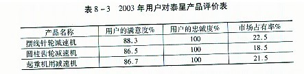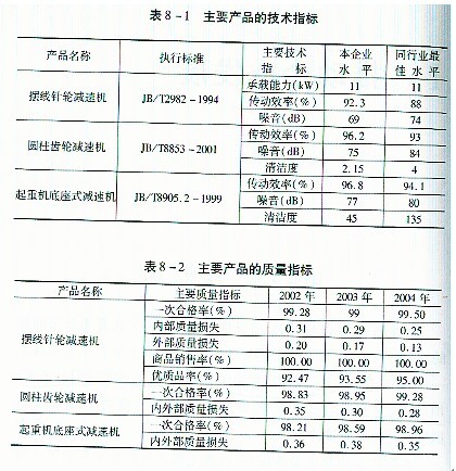 公司董事長(zhǎng)張國(guó)林提出并率先在泰星減速機(jī)股份有限公司全面推行的以“三改、三制、三化”為主線的一系列的管理理念、管理模式、管理方法、運(yùn)行機(jī)制和創(chuàng)新機(jī)制,不僅對(duì)公司的內(nèi)部管理產(chǎn)生了巨大的成效,取得了很好的企業(yè)效益,且得到了社會(huì)的廣泛認(rèn)可,產(chǎn)生了很好的社會(huì)效應(yīng)和一定的理論效應(yīng)。 I 推動(dòng)企業(yè)發(fā)展 創(chuàng)造了超一流的產(chǎn)品 泰星減速機(jī)股份有限公司正是認(rèn)真貫徹了公司董事長(zhǎng)張國(guó)林的“一保產(chǎn)品質(zhì)量,二保供貨期”的質(zhì)量思想,在企業(yè)員工中形成了一種“用戶在我心中、質(zhì)量在我手中、用戶的需求就是我們的追求、用戶滿意才有我們的滿意”的質(zhì)量共識(shí),為用戶提供了國(guó)內(nèi)領(lǐng)先、國(guó)際一流的高質(zhì)量的產(chǎn)品。 泰星產(chǎn)品的高質(zhì)量體現(xiàn)在:代表主要產(chǎn)品質(zhì)量水平的主要技術(shù)指標(biāo)遠(yuǎn)遠(yuǎn)超過(guò)了同行業(yè)的最佳水平。見(jiàn)表8—1。 主要產(chǎn)品的質(zhì)量指標(biāo)遠(yuǎn)遠(yuǎn)超過(guò)了國(guó)內(nèi)的最好水平。主要產(chǎn)品的質(zhì)量水平見(jiàn)表8—2。 到2004年泰星減速機(jī)股份有限公司的產(chǎn)品合格率連續(xù)11年達(dá)到100%,一等品率2004年達(dá)到95.3%,優(yōu)等品率達(dá)到72.50%。 泰星公司生產(chǎn)的產(chǎn)品噪音低,無(wú)污染,環(huán)境指標(biāo)達(dá)到了國(guó)內(nèi)的同行業(yè)的領(lǐng)先水平。  增強(qiáng)了研發(fā)能力 公司董事長(zhǎng)張國(guó)林認(rèn)識(shí)到:“技術(shù)創(chuàng)新是企業(yè)發(fā)展的關(guān)鍵。沒(méi)有先進(jìn)的技術(shù),先進(jìn)的設(shè)備和工藝,就不可能生產(chǎn)出質(zhì)量過(guò)硬的產(chǎn)品,企業(yè)也無(wú)法立足于市場(chǎng),擴(kuò)大規(guī)模,企業(yè)發(fā)展也就成為一句空話”。因此,董事長(zhǎng)張國(guó)林非常重視企業(yè)科技開(kāi)發(fā)工作,一方面,不斷加大公司的科技研發(fā)費(fèi)用的投人,早在2000年泰星減速機(jī)股份有限公司的研究與開(kāi)發(fā)費(fèi)用已經(jīng)占到公司當(dāng)年銷(xiāo)售收入的9.7%,遠(yuǎn)遠(yuǎn)超過(guò)了國(guó)內(nèi)同行業(yè)企業(yè)的先進(jìn)水平,已經(jīng)接近國(guó)外大型跨國(guó)公司10%的最好水平,泰星股份公司的研究與開(kāi)發(fā)費(fèi)用還在以每年20%的速度在增長(zhǎng);另一方面,為了提高企業(yè)的技術(shù)研發(fā)能力,泰星股份公司于1998年初就成立了減速機(jī)研究所,研究所取得了豐碩的科研成果,他們自主設(shè)計(jì)、自主研制、自主開(kāi)發(fā)的9000系列擺線釷輪減速機(jī)、9000系列硬齒面減速機(jī)、9000系列中硬齒面減速機(jī)達(dá)到了國(guó)際21世紀(jì)先進(jìn)水平。 營(yíng)造了整潔的工作環(huán)境 泰星股份公司董事長(zhǎng)張國(guó)林認(rèn)為:一方面,優(yōu)美的廠區(qū)環(huán)境,是企業(yè)領(lǐng)導(dǎo)層富有戰(zhàn)略眼光的重要反映,也是企業(yè)形象和職工精神面貌的綜合體現(xiàn)。它有利于避免因外部環(huán)境干擾而引起的不良心理和生理現(xiàn)象,激發(fā)職工的勞動(dòng)熱情,提高勞動(dòng)生產(chǎn)率;另一方面,公司的員工每天要在公司工作八個(gè)小時(shí),公司、工廠、車(chē)間的環(huán)境美化了,能為員工營(yíng)造一個(gè)舒適的工作環(huán)境,保證員工心情愉快,使員工處在一種愉悅的工作狀態(tài)中,這樣也有利于產(chǎn)品質(zhì)量的提高。因此,按照定制工藝的要求,本著使人機(jī)物處于最佳優(yōu)化組合狀態(tài)的原則,對(duì)公司的各個(gè)部門(mén),車(chē)間內(nèi)部進(jìn)行了合理的平面布置,并重點(diǎn)抓了“兩通”“三化”工程建設(shè),不僅保證了車(chē)間內(nèi)的工作環(huán)境清潔、整齊,且使整個(gè)廠區(qū)布局合理、美麗、整潔。難怪國(guó)外的 同行來(lái)星股份公司考察時(shí),發(fā)出了這樣的贊嘆:“簡(jiǎn)直就是一座花園式的工廠”。 形成了愛(ài)廠如家的工作熱情 沒(méi)有工作制度,沒(méi)有任何約束,員工自愿一天為企業(yè)工作14個(gè)小時(shí)。這種工作熱情在目前的市場(chǎng)經(jīng)濟(jì)社會(huì)中是罕見(jiàn)的。泰星公司員工的這種工作熱情來(lái)源于張國(guó)林董事長(zhǎng)提出的“能上能下,競(jìng)爭(zhēng)上崗:實(shí)績(jī)計(jì)酬”,“生活溫暖化”等一系列管理理念、管理方法在太星中的推行張董事長(zhǎng)的這些管理理念與管理方法的實(shí)施,在企業(yè)內(nèi)部為員工們創(chuàng)造了一種發(fā)揮自己的才能,發(fā)揮自已的水平:一切憑實(shí)績(jī)講話,~切憑數(shù)據(jù)講話的氛圍。讓員工們也感受到了為企業(yè)工作的甜頭,感受到了他們的切身利益是與企業(yè)的榮辱:興衰密不可分的。因此,員工們?cè)敢庖矘?lè)意為企業(yè)工作。 創(chuàng)造了領(lǐng)先同行業(yè)十年的輝煌業(yè)績(jī) 由于董事長(zhǎng)張國(guó)林治企有方,使泰星公司得到了快速的發(fā)展。在1993年,衡量公司經(jīng)濟(jì)效益的主要指標(biāo):資金利潤(rùn)率、銷(xiāo)售利潤(rùn)率、成本費(fèi)用利潤(rùn)率、總資產(chǎn)貢獻(xiàn)率、流動(dòng)資