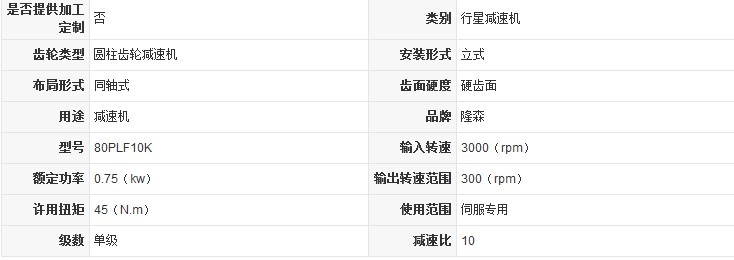 隆森機電專業(yè)生產(chǎn)精密行星減速機PLF80-10K