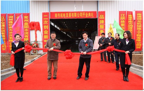 中國傳動董事會主席胡曰明先生(左二)、南傳機電董事長陸遜先生(左三)為南傳機電開業(yè)剪彩