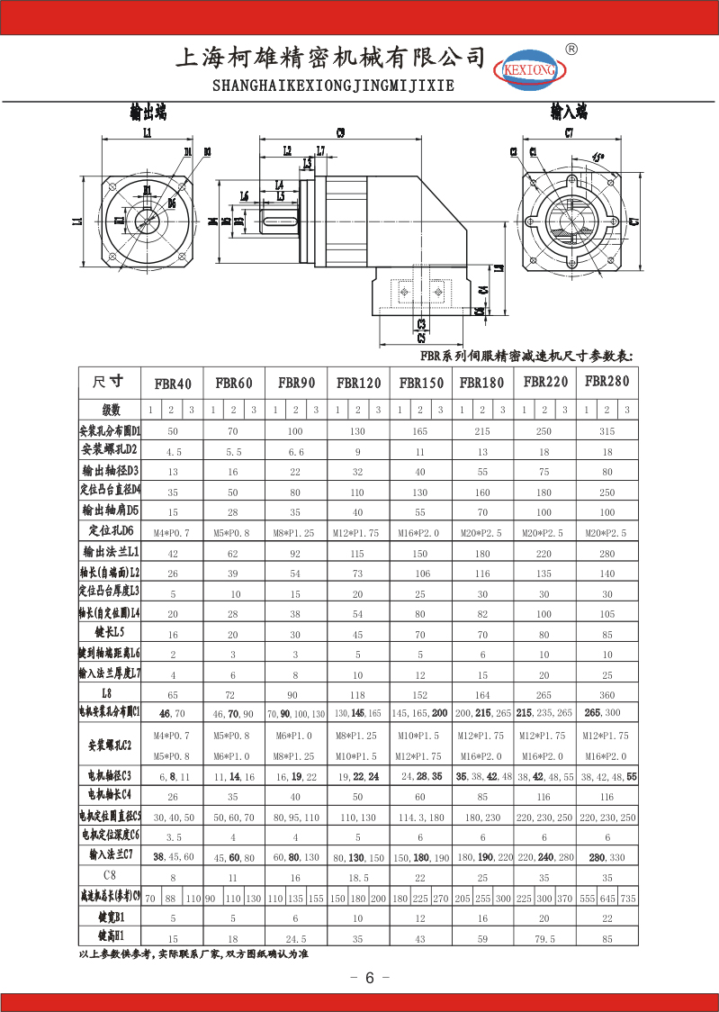 FBR系列伺服直角行星減速器分: FBR40、FBR60、FBR90、FBR120、FBR150、FBR180、FBR220、FBR280、同軸式機(jī)座型號,速比:1-1000有20多個比速可選擇;分一、二、三級減速傳動;精度:一級傳動精度在4-6弧分,二級傳動精度在6-8弧分,三級傳動精度7-10弧分;等一千多種規(guī)格。
