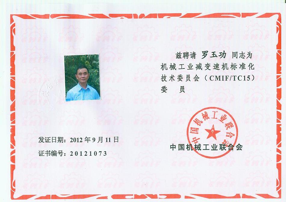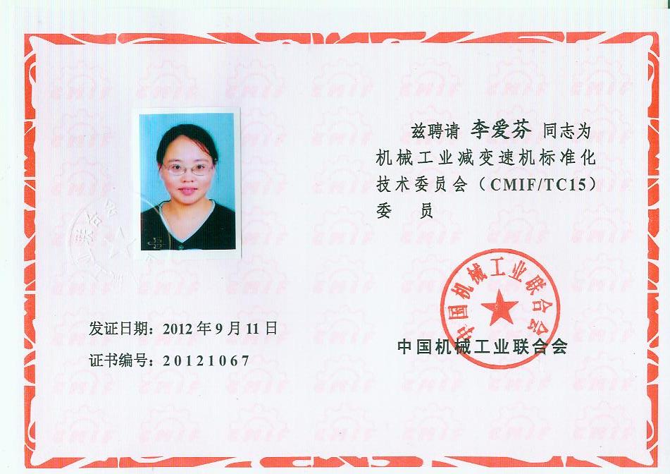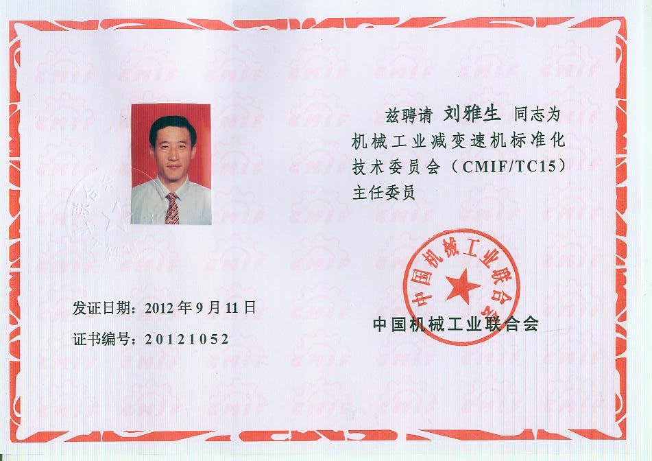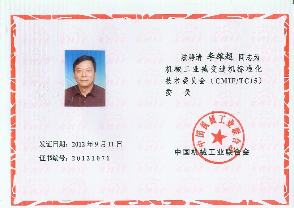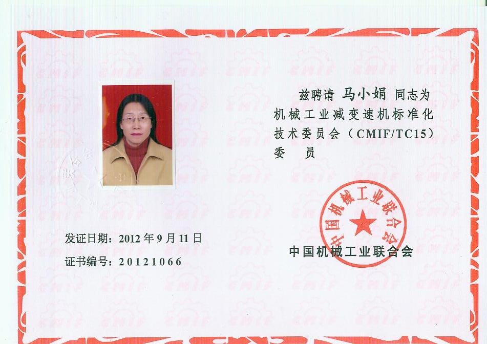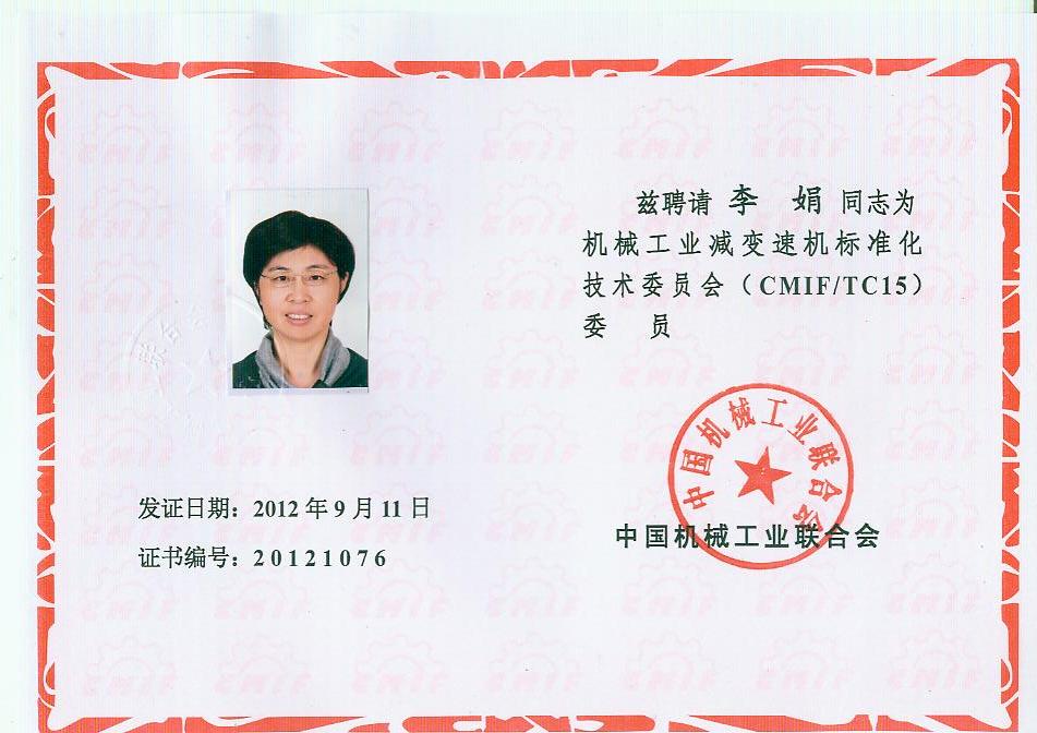你會《關(guān)于報送機械工業(yè)減變速機標準化技術(shù)委員會(第二屆)換屆文件的函》(機減標委秘字[2012]08號)收悉。經(jīng)研究,同意機械工業(yè)減變速機標準化技術(shù)委員會換屆及組成方案。第二屆機械工業(yè)減變速機標準化技術(shù)委員會(CMIF/TC15)由29名委員、1名顧問組成(委員名單見附件),劉雅生任主任委員;王瑜、張謙、王金武、姜耀林任副主任委員;劉志新任委員兼秘書長;周有強任顧問。秘書處設在天津市石化通用機械研究所。