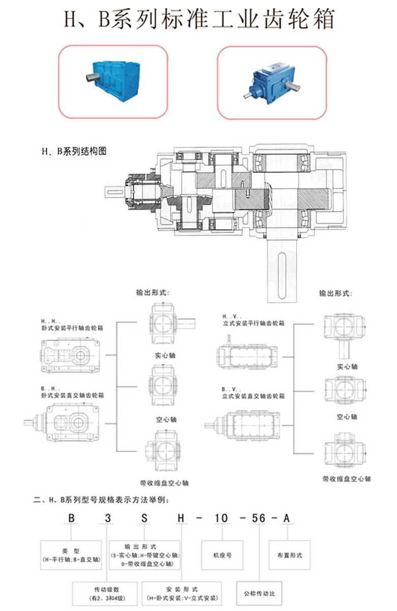 | 1.特點,平行軸輸出,體積小,減速比小,輸出轉(zhuǎn)速快,能耗小,噪聲低,底座式安裝中心高低。 2.安裝型式和輸出方式:底座式、法蘭式安裝, 實心軸輸出。 3.輸入方式:直聯(lián)電機,軸輸入和連接法蘭輸入。 4.減速比:1.6~6.3,平均效率,98% |