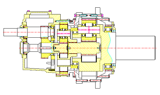 箱體內(nèi)的太陽輪、行星輪、內(nèi)齒圈及螺旋錐齒輪均采用可控氣氛滲碳淬火處理,得到高硬耐磨表面,熱處理后全部磨齒,降低了噪音,提高了整機的效率及使用壽命。