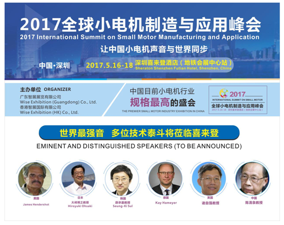 這是一次全球高規(guī)格的年度峰會,一場不容錯過的行業(yè)盛宴!來自世界各地的行業(yè)技術(shù)泰斗、知名企業(yè)及配套企業(yè)、終端企業(yè)的領(lǐng)袖,知名媒體、權(quán)威領(lǐng)導與您共同打造“小電機行業(yè)最具影響力的盛會"。讓我們相約2017深圳。