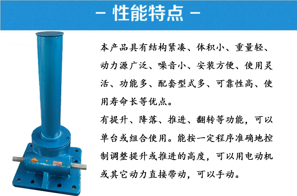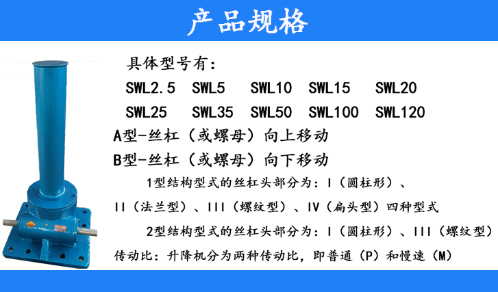 SL系列蝸輪絲桿升降機(jī)是一種基礎(chǔ)起重部件,符合JB/T8809-1998(原JB/Z04391-86)標(biāo)準(zhǔn)。該產(chǎn)可廣泛用于機(jī)械、冶金、建筑、化工、醫(yī)療文化衛(wèi)生等各個(gè)行業(yè)。承載能力2.5—120T。具有結(jié)構(gòu)緊湊、積小、重量輕、動(dòng)力源廣泛、無(wú)噪音、安裝方便、使用靈活、功能多、配套形式多、可靠性高、使用壽命長(zhǎng)許多優(yōu)點(diǎn)。具有提升、降落、推進(jìn)、翻轉(zhuǎn)等多種功能,可以單臺(tái)或組合使用,能按一定程序準(zhǔn)確地控制調(diào)整升或推進(jìn)的高度,可以用電動(dòng)機(jī)或其它動(dòng)力直接帶動(dòng),也可以手動(dòng)。最高輸入轉(zhuǎn)速1500r/min,最大提升速2.7m/min。有不同的結(jié)構(gòu)型式和裝配方式,提升高度按用戶的要求制造。該裝置可以自鎖。