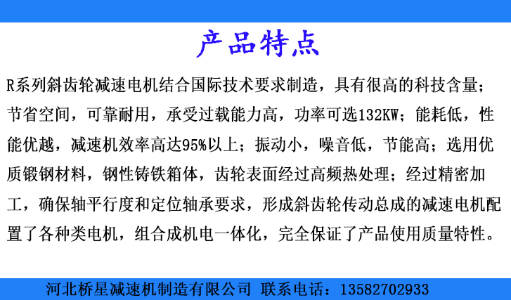 1、R系列斜齒輪減速電機結(jié)合國際技術(shù)要求制造,具有很高的科技含量