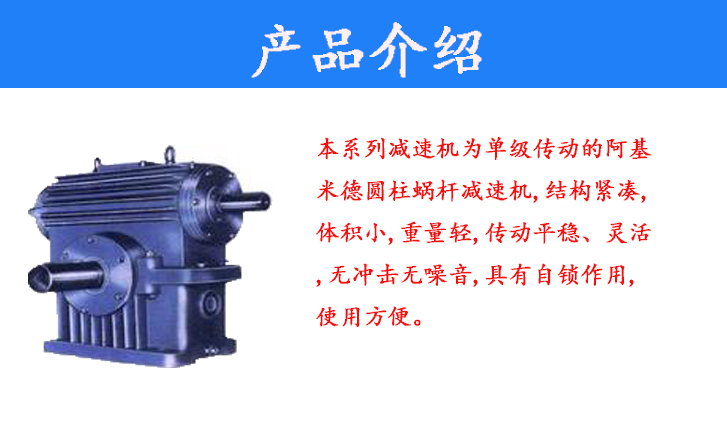 本系列減速機(jī)為單級(jí)傳動(dòng)的阿基米德圓柱蝸桿減速機(jī),結(jié)構(gòu)緊湊,體積小,重量輕,傳動(dòng)平穩(wěn)、靈活,無(wú)沖擊無(wú)噪音,具有自鎖作用,使用方便。