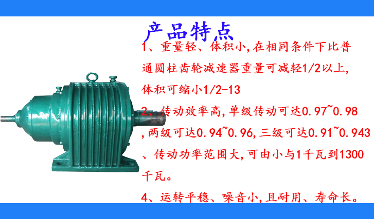 1、重量輕、體積小,在相同條件下比普通圓柱齒輪減速器重量可減輕1/2以上,體積可縮小1/2-132、傳動效率高,單級傳動可達(dá)0.97~0.98,兩級可達(dá)0.94~0.96,三級可達(dá)0.91~0.943、傳動功率范圍大,可由小與1千瓦到1300千瓦。4、運轉(zhuǎn)平穩(wěn)、噪音小,且耐用、壽命長。