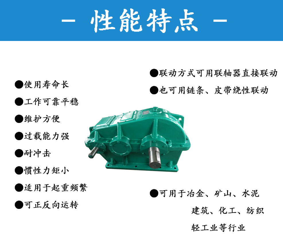 該系列齒輪減速機使用壽命長,工作可靠,維護方便。本機還具有過載能力強,耐沖擊、慣性力矩小,適用于起重頻繁和正、反向運轉(zhuǎn)的特點。其聯(lián)動方式可用聯(lián)軸器直接聯(lián)動,也可用鏈條、皮帶撓性聯(lián)動主要用于冶金、礦山、水泥、建筑、化工、紡織、輕工業(yè)等行業(yè)。