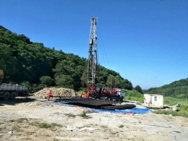 圖片新聞:公司院內(nèi)的地?zé)嵩囼?yàn)一井,下套管施工(2017年史文全報(bào)道)