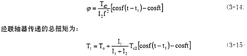 上式的解由兩部分組成,即對(duì)應(yīng)的其次方程的通解和本方程的特解。經(jīng)運(yùn)算后可得到聯(lián)軸器所受的諧振扭矩為: