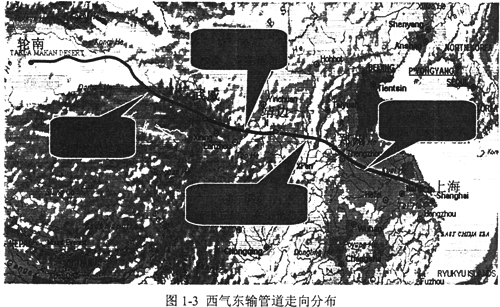 西氣東輸工程是我國(guó)在新世紀(jì)啟動(dòng)的最大的建設(shè)工程之一,是西部大開發(fā)的標(biāo)志性工程。工程西起新疆塔里木盆地的輪南氣田,經(jīng)甘肅、寧夏,進(jìn)入陜西,在靖邊與長(zhǎng)慶氣田連接,經(jīng)山西、河南、安徽、江蘇、浙江,東抵上海。