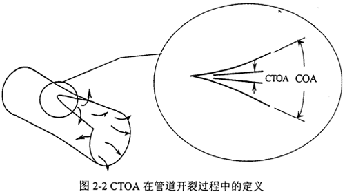 裂紋尖端張開角CTOA(Crack Tip Opening Angle)最早被用來分析核電站管路的穩(wěn)態(tài)裂紋擴展,后來用于輸氣管線和航空工業(yè)。如圖2-2,與裂紋張開角COA不同,CTOA對應(yīng)于一定的斷裂擴展狀態(tài),不隨測量點的位置而改變。CTOA在數(shù)學(xué)上可以按下式定義: