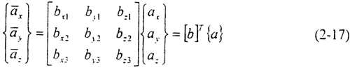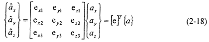 對于總體坐標系中的任意矢量a,其在節(jié)點坐標系中的分量可以表達為: