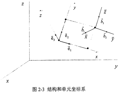 ●節(jié)點坐標系行(,),反映節(jié)點的平動與轉(zhuǎn)動;正交基矢量為bi。