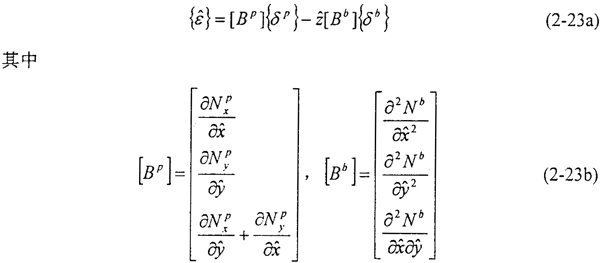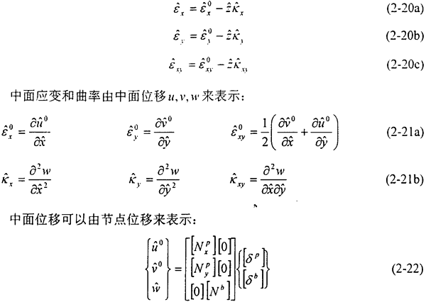 基于Kirchhoff假設(shè)的板殼單元,殼體中某一點的應(yīng)變,,可以由中面應(yīng)變,,和曲率,,來表示: