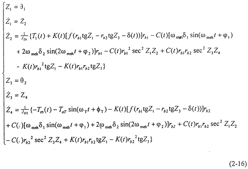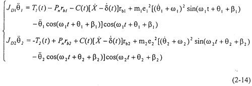 當不考慮偏心質量,而只考慮存在齒輪齒側間隙時,方程組(2-14)可化為:
