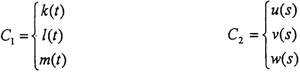 假設(shè)M點(diǎn)是兩軸的嚙合點(diǎn)(運(yùn)動曲線C1和C2的交點(diǎn),也就是傳力點(diǎn))假設(shè)初始條件為:當(dāng)時間t=0時,