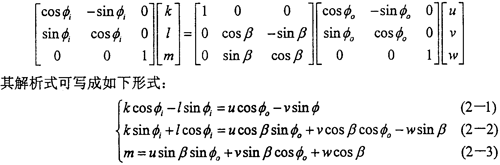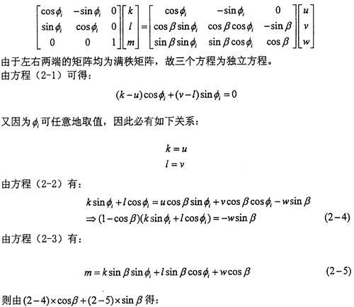 如圖2-21所示,坐標(biāo)系OXjYjZj可以看作是坐標(biāo)系OXiYiZi繞Xi(或Xj)旋轉(zhuǎn)了一個角β度。旋轉(zhuǎn)的方向余弦矩陣為: