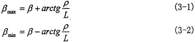 由于在轉(zhuǎn)動(dòng)的過(guò)程中,三叉桿交點(diǎn)作旋轉(zhuǎn)運(yùn)動(dòng),因此會(huì)導(dǎo)致輸入軸與輸出軸之間的夾角發(fā)生變化,其變化范圍為βmin~βmax,當(dāng)O點(diǎn)(見(jiàn)圖3-5)處于輸入軸與輸出軸轉(zhuǎn)動(dòng)錐中心線所構(gòu)成平面的兩個(gè)極限位置時(shí),偏轉(zhuǎn)角達(dá)到兩極值: