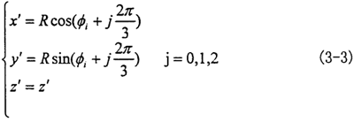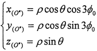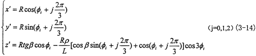 為求出這個(gè)參數(shù)方程,我們必須解決動(dòng)坐標(biāo)系O″X(qián)″Y″Z″同定坐標(biāo)系OXYZ之間的坐標(biāo)變換矩陣[Moo″]。