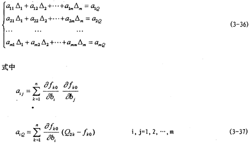 ,并解方程組(3-36)得新的△i,進而得bi。這種過程可以重復進行,直至|△t |的值小到給定的精度為止。