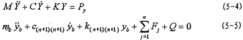經(jīng)正則坐標(biāo)變換,雖然得到互不耦合的線性微分方程組(5-9),但是(5-9)式仍然不能像單自由度振動(dòng)系統(tǒng)那樣求解,因?yàn)椋?-9)式中的激勵(lì)力包含未知的振動(dòng)位移yb和振動(dòng)速度