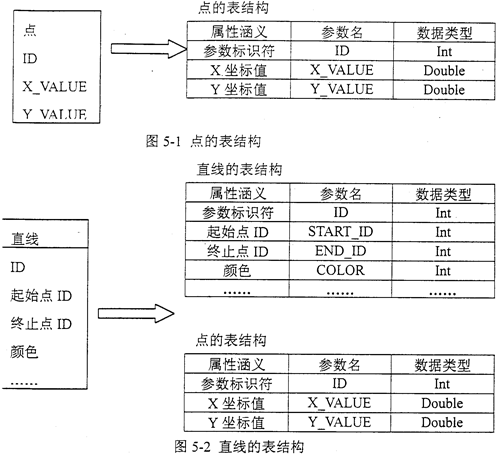 每個類都可映射成一張或多張表,圖5-1是點類映射成表的例子。
