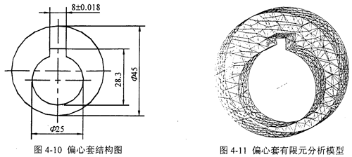 偏心套是高速輸入軸上的主要傳遞扭矩部件,由第二章分析可得,偏心距e=4.18mm,由于偏心結(jié)構(gòu)和裝配位置上的限制,所以它成了三環(huán)減速機(jī)中的薄弱環(huán)節(jié),有必要對其進(jìn)行深入的分析。