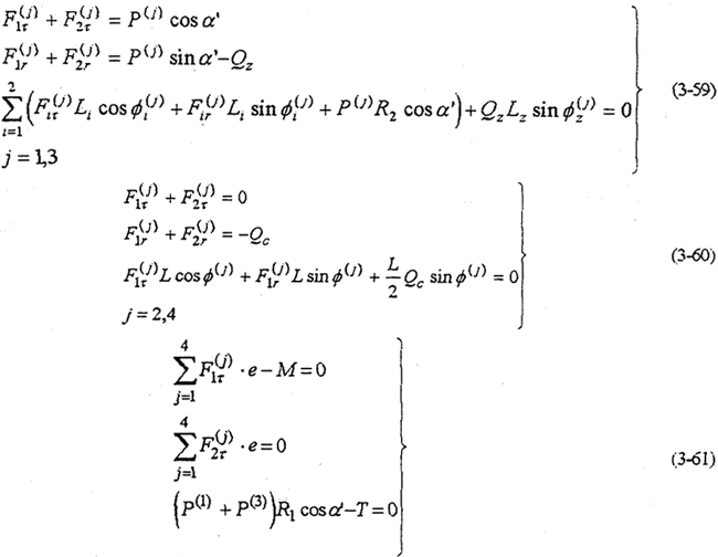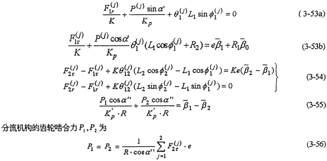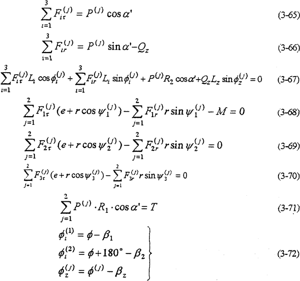 ——共可得到4個方程。由式(3-59)-(3-63)就構(gòu)成多相并列雙曲柄機構(gòu)輸入式二齒環(huán)內(nèi)齒行星傳動機構(gòu)的動力分析數(shù)學(xué)模型。