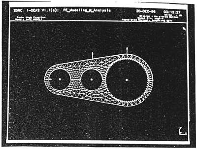 從上節(jié)介紹知,彈性體的柔度系數(shù)矩陣可以通過有限元法,加單位載荷來(lái)計(jì)算確定。因此,偏心套及內(nèi)齒行星傳動(dòng)齒板的柔度計(jì)算,實(shí)際上是對(duì)其進(jìn)行有限元建模分析。下面以SHQ40型三環(huán)傳動(dòng)為例,在SUN工作站上使用I-DEAS軟件中的有限元模塊計(jì)算偏心套及齒板的柔度系數(shù)。