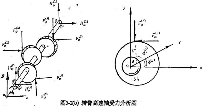 對齒板及高速轉(zhuǎn)臂軸,輸出軸進(jìn)行動態(tài)靜力分析(見圖5-2),可得三環(huán)減速器的動力分析基本方程(忽略各構(gòu)件重力作用)。