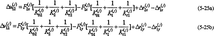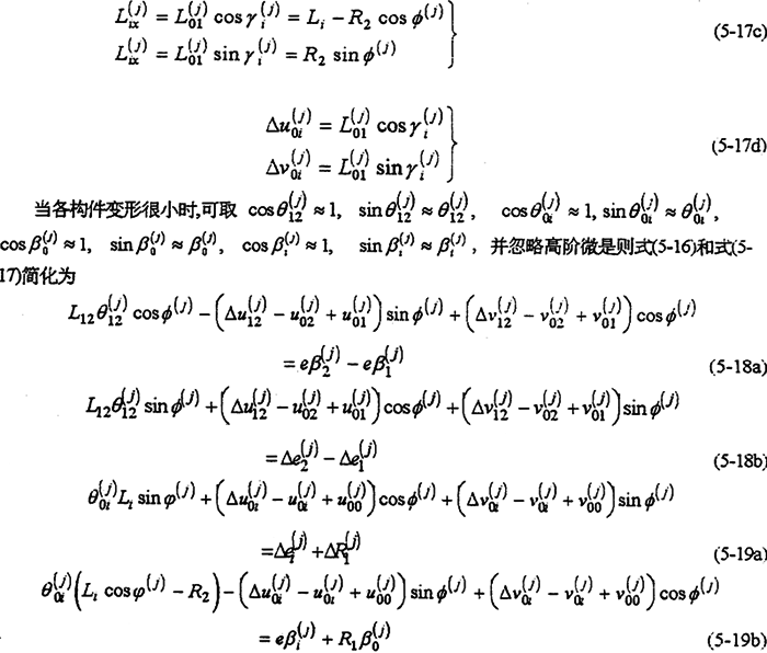 式(5-18)中的△u(j)12,△u(j)12為機(jī)構(gòu)變形后兩偏心套中心之間的長度L12產(chǎn)生的增量分量,它包括齒板兩高速軸孔之間的相對變
