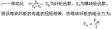 在不作特殊說明時,以下的受力分析是基于給定的條件:要率p=15kw,輸入轉(zhuǎn)速n=1500rpm,速比i=17,偏心距e=5,嚙合角α=30°。