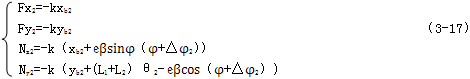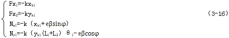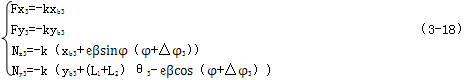 連桿上兩端的作用反力與接觸點處的彈性變形量成正比,因此可表達(dá)為: