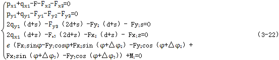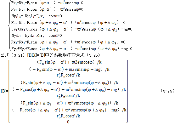 共可列出10個方程,聯(lián)立式(3-10)或(3-11),對于多相并列雙曲柄結(jié)構(gòu),用一般靜態(tài)力學(xué)分析方法,可列出3n+10個方程,而未知量的總數(shù)為4n+9(運動副反力和輸入力矩),故機(jī)構(gòu)中未知量,(n-1)正是機(jī)構(gòu)中的虛約束個數(shù),為了得到補(bǔ)充方程,必須考慮構(gòu)件的變形協(xié)調(diào)要求。
