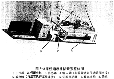 基于圖5-1所示機構,配置伺服驅動裝置、傳感器以及計算機控制系統(tǒng),獲得該柔性速度補償裝置的原型,如圖5-2所示。