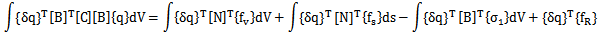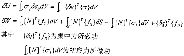對{δq}的任何分量,總位能原理總能成立,所以在整個域中對所有單元求和,有