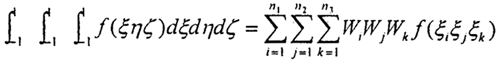 單元剛度陣中dV=∣J∣dξdηdζ,所以在局部坐標(biāo)系ξηζ內(nèi)積分式(3.1.6),可采用三維高斯求積公式: