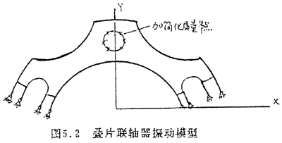 由于APOLANS程序的局限性,不能計算磨擦狀態(tài)下的振動問題,因而本文所討論的疊片振動問題將忽略磨擦對它的影響。我們應該以整個聯(lián)軸器來進行計算以確定其系統(tǒng)的特性,但由于程序本身的問題,不可能整個系統(tǒng)分毫不差地組成計算模型,因而必須對整個系統(tǒng)進行簡化,當然,如何簡化才是適當?shù)膶τ嬎憬Y(jié)果的正確性影響很大。