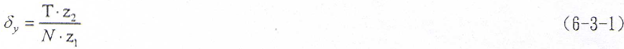 考慮安裝位置的影響,要使光電編碼器與機(jī)床其他零件無干涉,一般對(duì)傳動(dòng)齒輪有中心距的要求,以下推導(dǎo)絲桿導(dǎo)程T,光電編碼器刻線數(shù)N,傳動(dòng)齒輪齒數(shù)z1、z2及脈沖當(dāng)量δy之間的關(guān)系。設(shè)光電編碼器轉(zhuǎn)1轉(zhuǎn),則絲桿轉(zhuǎn)過z2/z1轉(zhuǎn),刀架的位移為T·z2/z1。所以有