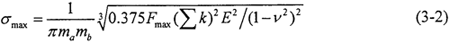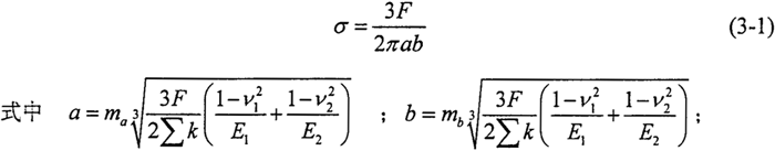 圓柱正弦活齒傳動的嚙合副在載荷作用下,活齒分別與主動軸的外滾道及殼體的內滾道接觸,一般滾道半徑取r′= (1.04-1.11)r,r為活齒半徑。活齒與滾道的接觸問題,可看作兩自由曲面體的彈性接觸問題,根據赫茲(Hertz)應力理淪,在外加總載荷F作用下兩自由曲面彈性體的接觸應力計算公式為