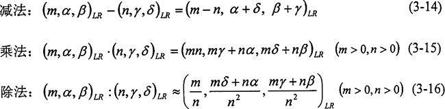 式(3-15)、(3-16)是近似的,嚴格地說,兩個L-R型模糊數(shù)葙乘或相除,其結果不再是L-R型模糊數(shù)。