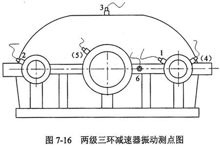 對(duì)兩級(jí)三環(huán)減速器的原型機(jī)和改進(jìn)型機(jī)的特征振動(dòng)點(diǎn)進(jìn)行了振動(dòng)測(cè)試,結(jié)果表明:油膜浮動(dòng)兩級(jí)三環(huán)減速器具有良好的減振效果。