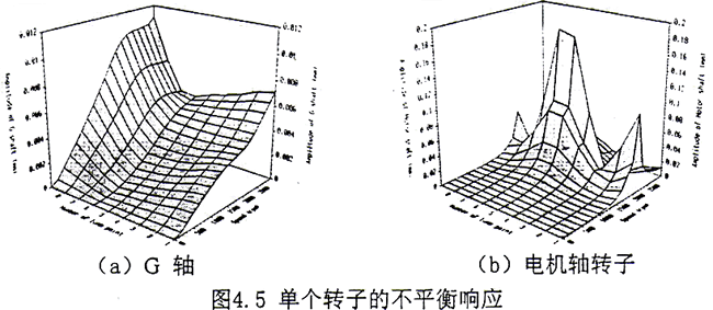 (1)分別計算G軸和電機(jī)軸單個轉(zhuǎn)子的不平衡響應(yīng),計算結(jié)果見圖4.5a和圖4.5b。