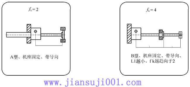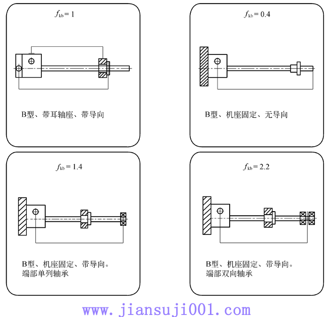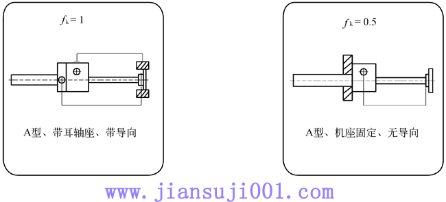 fK:根據(jù)絲杠軸承類(lèi)型和支撐方式給定的修正參數(shù),按下圖確定;