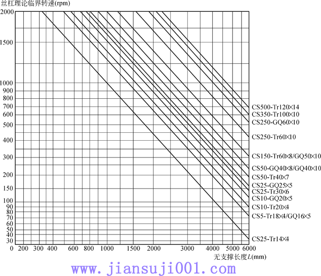 對(duì)于B型結(jié)構(gòu)的升降機(jī),在絲杠很細(xì)長(zhǎng)時(shí),就需要計(jì)算絲杠的最大許用轉(zhuǎn)速,如需要的轉(zhuǎn)速高于計(jì)算值,則需要選擇更大規(guī)格的絲杠,同時(shí)驗(yàn)算升降機(jī)的扭矩、負(fù)載和功率。