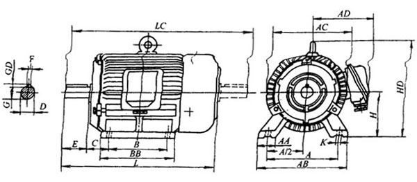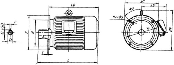 電動機的安裝型式B3、B5和B14三種。YT711~712的出線盒在機座上方;YT80~112的出線盒在機座側(cè)面。